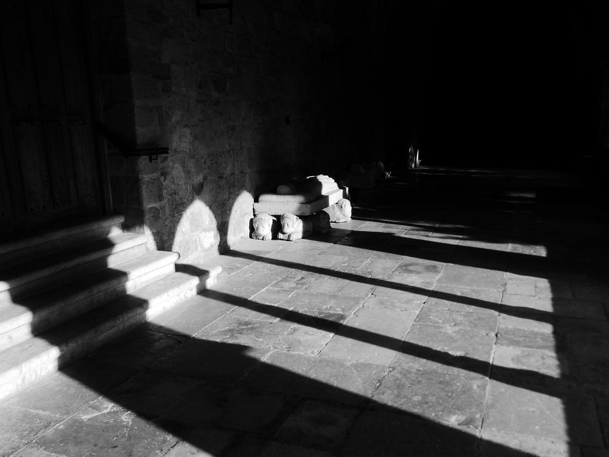 : Kreuzgang der Kathedrale. Die Löwen, sie ruhen.